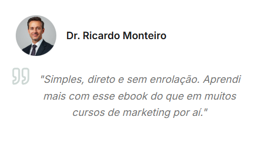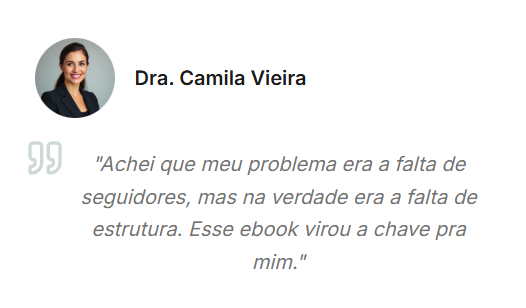 Ao final do ebook, você vai receber um diagnóstico personalizado do seu posicionamento atual no digital. Nossa equipe vai analisar sua estrutura (Instagram, Google, anúncios, funil e atendimento) e montar um plano prático de crescimento para o seu escritório.